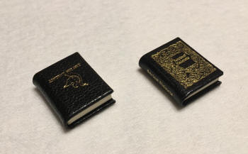 Designed by Donna Wilson. Illustrations of ancient helmets. 1" tall, 48 pages. Brown leather cover with silver stamping. Silver gilded top edge. Marbled end papers. Hand bound by Hugo Grummich at the Cincinnati Bindery, Inc. ©1980 Mosaic Press. Two cover art produced, both $24