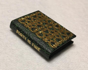 Written and illustrated by Miriam Irwin.1 1/8" tall, 48 pages. Green leather cover with ornate gold stamping. Green marbled end papers.© 1977 by Miriam Irwin Mosaic Press. $24