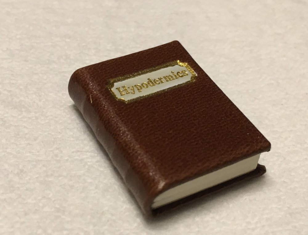 The early developement of hypodermic syringes in medicine. Written by Stephen Oldroyd, DMD and Kenneth Stoffers, DMD. Designed and illustrated by Donna K. Wilson. 15/16" tall, brown leather covers with top edge gilded in gold. Brown and tan marbled endpapers. © Mosaic Press 1980. $30