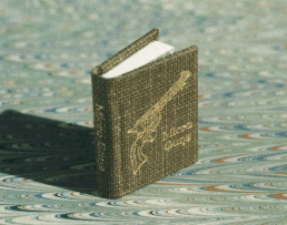 The art and history of tiny guns—perfectly scaled-down replicas of full-size guns. some of them really work! Frank Cameron writes about little Derringers, revolvers, muskets, and even Gattling guns and cannon. Illustrations by Frank Campione. Light brown book cloth with gold stamping. 15/16" tall, 48 pages. $24.00.